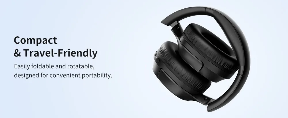 With ultra-long 60-hour battery life, wegear HS7 over ear headphones wireless bluetooth keep you powered through long trips and enjoy up to about 900 songs. A 10-minute quick charge provides 5 hours of playtime. Memory foam earcups and headband ensure comfort, while the adjustable design fits all head sizes.The ergonomic and foldable design gives you maximum comfort and easy portability, you can easily fold the wegear HS7 headphones into carrying bags and travel cases