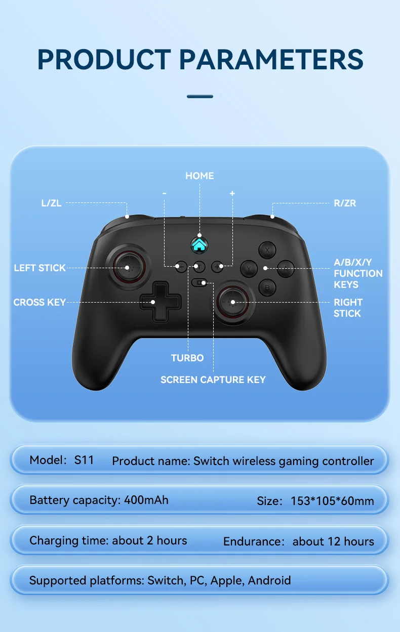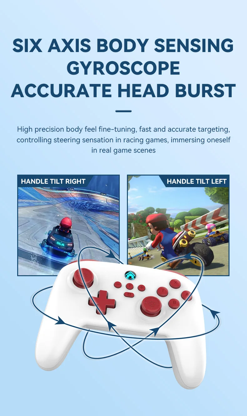 Wireless Gaming Controller for Switch/PC/Android/iOS Bluetooth 6-Axis Gamepad with Motor Vibration TURBO Wake-up Best Choice
